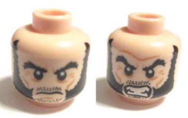 Minifigure, Head Dual Sided Bushy Black Eyebrows and Long Thick Sideburns, Frown / Angry Pattern