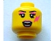 Minifigure, Head Female Black Thin Eyebrows, Eyelashes, Dark Pink Eye Shadow, Lips, and Lightning Bolt, Open Mouth with Teeth Parted and Red Tongue Pattern