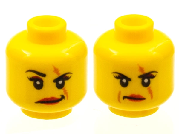 Minifigure, Head Dual Sided Female Scar over Left Eye, Raised Eyebrow / Scowl Pattern (Ann Lee)