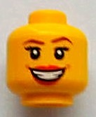 Minifigure, Head Female with Large Red Lips, Open Mouth Smile with Teeth, Brown Eyebrows, Thin Eyelashes and White Pupils Pattern