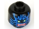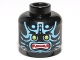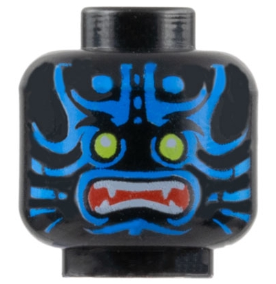 Minifigure, Head Alien with Lime Eyes, Blue Markings, Angry Open Red Mouth with Sharp Teeth Parted Pattern