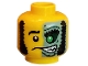 Minifigure, Head Male Mask Half Sand Green with Green Eye Open Grin Pattern