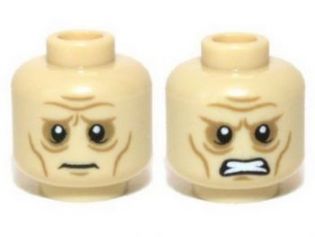 Minifigure, Head Dual Sided LotR Wrinkles and Sunken Eyes Worried / Angry Pattern (Grima)