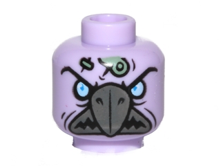 Minifigure, Head Alien Chima Vulture with Dark Bluish Gray Beak, Bright Light Blue Eyes, and Sand Green Bandage Pattern