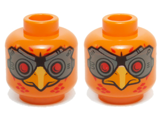 Minifigure, Head Dual Sided Alien Chima Phoenix with Red Eyes and Dark Bluish Gray Goggles, Rounded / Squared Lower Beak Pattern (Firox)