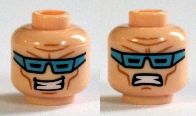 Minifigure, Head Dual Sided Medium Blue Goggles, Smile with Teeth / Clenched Teeth Pattern (Captain Cold)