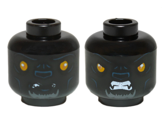 Minifigure, Head Dual Sided Alien Chima Panther with Yellow Eyes, Fangs and Dark Blue Facial Lines, Neutral / Angry Pattern (Tormak)