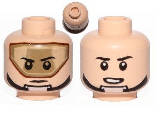 Minifigure, Head Dual Sided Dark Tan Visor, Stern Black Eyebrows, Chin Strap / Open Mouth Pattern (SW T-16 Skyhopper Pilot)
