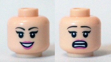 Minifigure, Head Dual Sided Female Black Eyelashes, Dark Pink Lips, Smile with Teeth / Open Mouth Scared Pattern (Daphne)