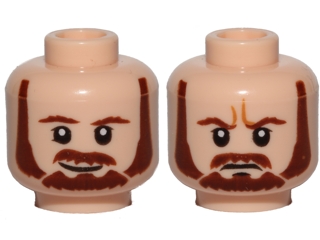 Minifigure, Head Dual Sided Beard, Brown Eyebrows, Moustache, White Pupils, Smile / Frown Pattern (SW Qui-Gon)