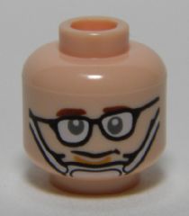 Minifigure, Head Glasses with Crooked Eyeglasses, Brown Eyebrows, Chin Strap Pattern (Ghostbusters Tully)