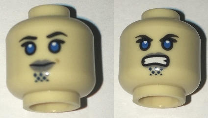 Minifigure, Head Dual Sided Alien with SW Luminara Unduli Gray Lips and Large Blue Eyes, Neutral / Angry Pattern