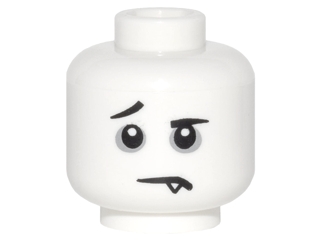 Minifigure, Head Black Eyebrows, Raised Right Eyebrow, Dark Bluish Gray Eye Circles, Downturned Mouth with Fang Pattern