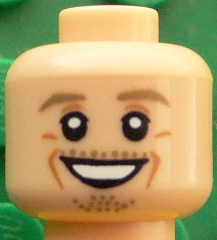 Minifigure, Head Dark Tan Eyebrows, Chin Stubble, White Pupils, Cheek Lines, Open Smile Pattern (Max Kruse)