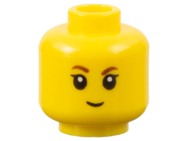 Minifigure, Head Child Brown Eyebrows, Black Eyelashes, Slight Smile Pattern