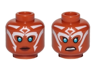 Minifigure, Head Dual Sided Alien with SW Ahsoka Blue Eyes and White Lines Neutral / Angry Pattern