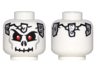 Minifigure, Head Skull Red Eyes, Black Cracks, Silver Metal Plates, Light Bluish Gray Cheek Lines, Evil Grin Pattern