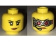 Minifigure, Head Dual Sided Female Black Eyebrows, Eyelashes, Lopsided Grin with Dark Orange Lips / Silver Mechanical Goggles with Red Lenses and Headset Pattern