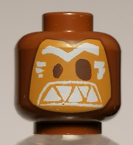 Minifigure, Head Alien Mask Medium Nougat with Dark Brown Eyes and White Eyebrows and Triangular Teeth Pattern (Moana Kakamora)
