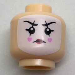 Minifigure, Head White Face Paint, Black Lines Through Eyebrows and Eyes, Bright Pink Hearts on Cheeks Pattern
