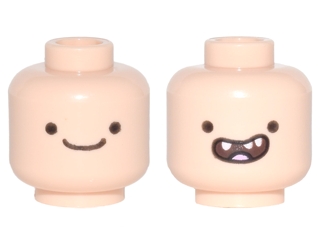 Minifigure, Head Dual Sided Small Black Wide Set Eyes, Smile / Open Mouth Smile with Tongue and 3 Teeth Pattern (Finn the Human)