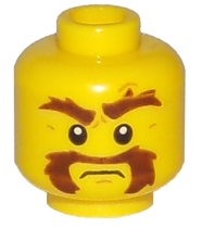 Minifigure, Head Reddish Brown Bushy Eyebrows, Horseshoe Moustache, Left Eyebrow Raised Pattern