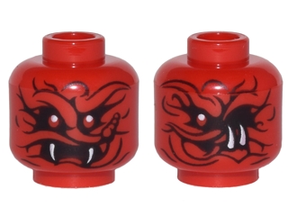 Minifigure, Head Dual Sided Alien Snake with Black Wavy Lines, 2 Red Eyes and 2 White Fangs / 1 Red Eye and 2 White Fangs on Side Pattern