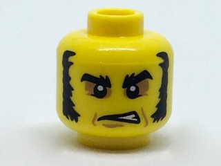 Minifigure, Head Black Eyebrows and Mutton Chops, Dark Tan Around Eyes, Gruff Expression Pattern