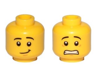 Minifigure, Head Dual Sided Black Eyebrows, White Pupils, Scared / Lopsided Smile Pattern