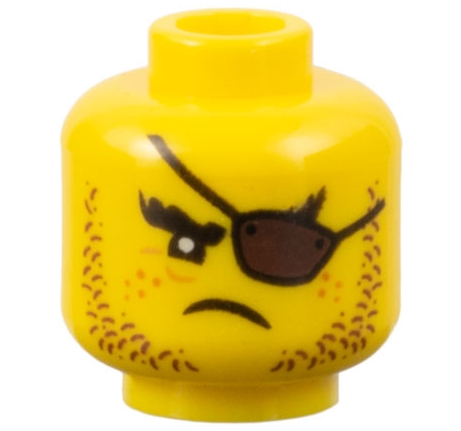 Minifigure, Head Beard Brown Stubble, Dark Brown Eye Patch, Freckles Pattern