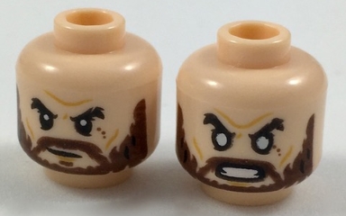 Minifigure, Head Dual Sided Black Eyebrows, Reddish Brown Beard, Neutral / Angry with White Eyes Pattern