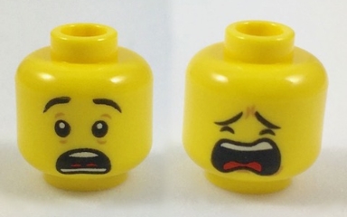 Minifigure, Head Dual Sided Black Eyebrows, Scared / Closed Eyes Crying Pattern