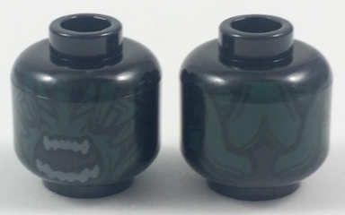 Minifigure, Head Alien with Dark Green Scales and Light Gray Teeth in Gaping Mouth Pattern