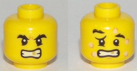 Minifigure, Head Dual Sided Black Eyebrows, Gold Tooth, Five Bee Stings, Determined / Crestfallen Pattern
