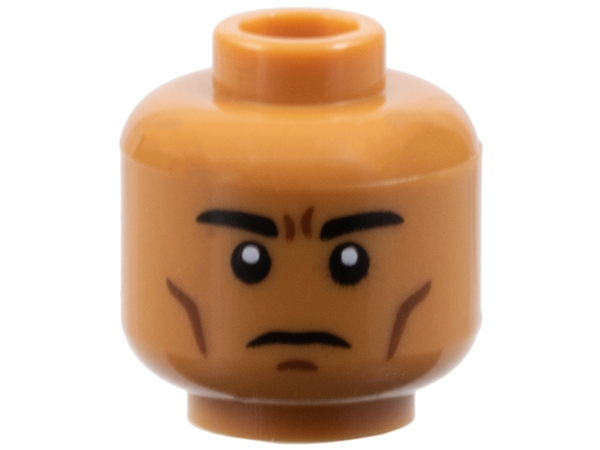 Minifigure, Head Black Eyebrows, Dark Brown Cheek Lines, Firm Expression Pattern