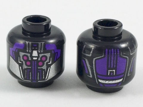 Minifigure, Head Alien Sakaarian with Dark Purple Armor, Silver Jaw Guard, and 4 Magenta Eyes Pattern