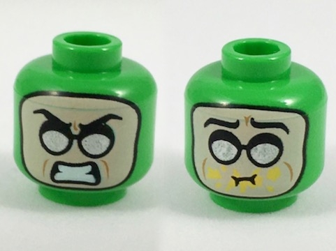 Minifigure, Head Dual Sided Balaclava, Light Nougat Face, Silver Round Sunglasses, Scowl / Eating Mustard Pattern