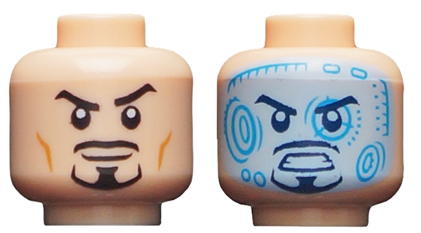Minifigure, Head Dual Sided Black Eyebrows and Goatee, Raised Eyebrow / Bright Light Blue and Dark Azure Head-Up Display Pattern