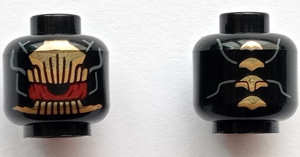 Minifigure, Head Alien Large Red Open Mouth with Gold Sharp Teeth, Scales on Back Pattern