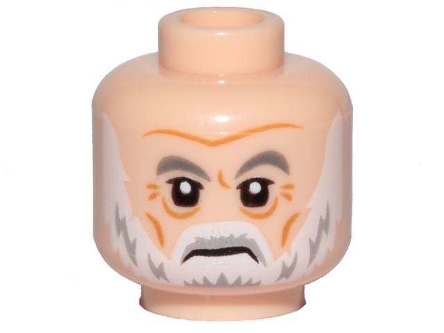 Minifigure, Head White Gray Eyebrows, Gray and White Beard and Wrinkles Pattern
