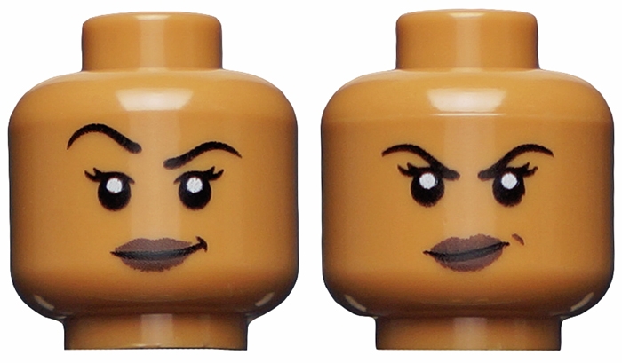 Minifigure, Head Dual Sided Black Eyebrows, Eyelashes, White Pupils, Smirk / Raised Right Eyebrow, Smile Pattern (Vixen)