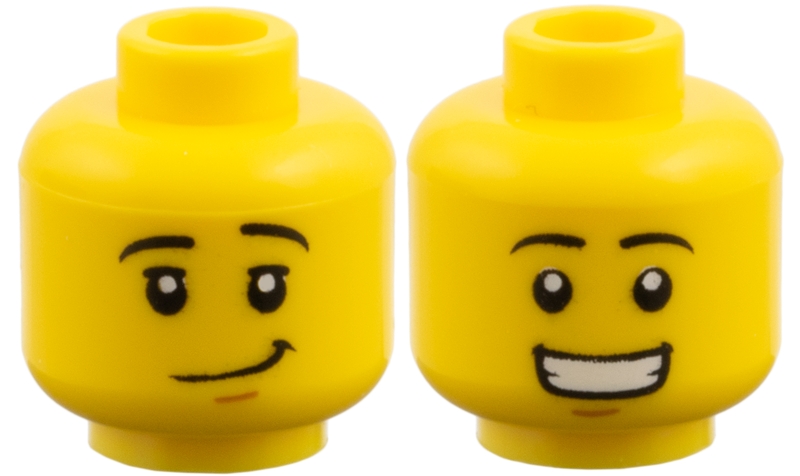 Minifigure, Head Dual Sided Black Eyebrows, Medium Nougat Chin Dimple, Lopsided Grin / Open Mouth Smile with Teeth Pattern