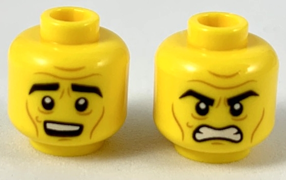 Minifigure, Head Dual Sided Black Thick Eyebrows, Medium Nougat Brow Furrows and Cheek Lines, Surprised / Angry Pattern