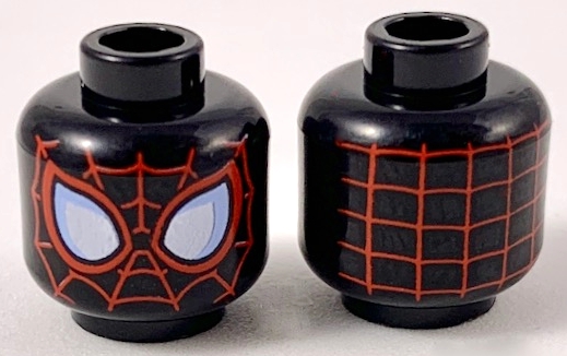 Minifigure, Head Alien with Spider-Man Red Webbing, Large White Eyes with Bright Light Blue Edges and Red Borders, Webs DO NOT Touch at Nose Pattern