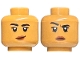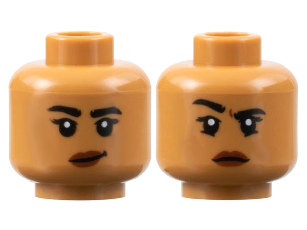 Minifigure, Head Dual Sided Female, Black Eyebrows, Reddish Brown Lips, Lopsided Grin / Right Eyebrow Raised Pattern