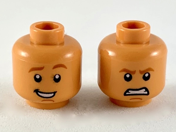 Minifigure, Head Dual Sided Dark Orange Eyebrows and Chin Contour, Smile / Fierce Pattern