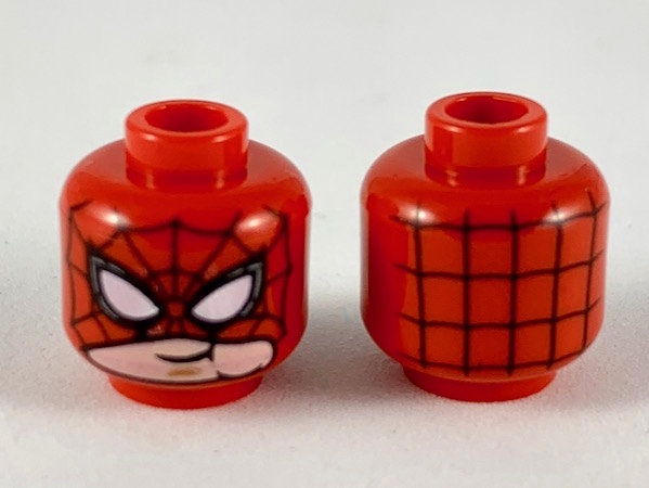 Minifigure, Head Alien with Spider-Man Black Webbing and White Eyes, Mask Pulled Up Showing Mouth Pattern