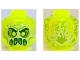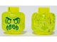 Minifigure, Head Alien Ghost with Yellowish Green Face, Dark Green Thick Eyebrows, Lime Eye Shadow, Furrowed Brow, Green Angry Open Mouth with Slime, Flames on Back Pattern