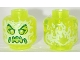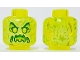Minifigure, Head Alien Female Ghost with Yellowish Green Face, Dark Green Eyebrows, Double Eyelashes, Lime Eye Shadow, Green Angry Open Mouth with Slime, Sharp Teeth and Tongue, Flames on Back Pattern