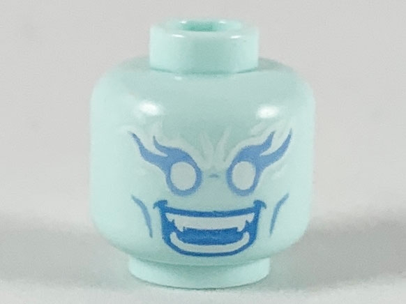Minifigure, Head Alien Female Bright Light Blue Long Eyelashes and Cheek Lines, White Eyes, Blue Open Mouth Smile with Teeth Parted and Fangs Pattern